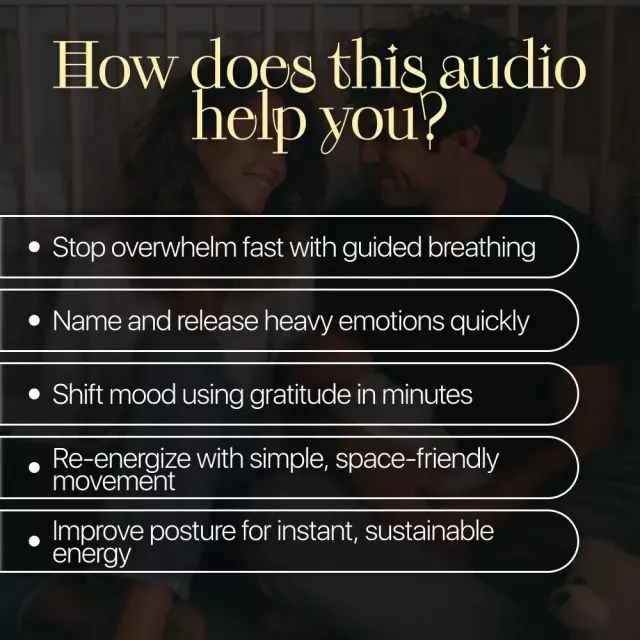 Parents who feel stretched thin and need relief they can actually use. Caregivers who want quick, calming tools between tasks and bedtime routines. Anyone who prefers gentle, practical audio coaching over complicated programs.