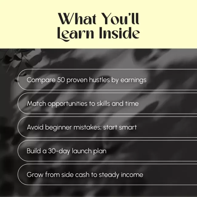 Ready to turn free hours into real dollars? Download Top 50 Side Hustles That Actually Pay now for instant access. Use the checklists, prompts, and 30-day launch plan to choose your best hustle and start earning—one focused step at a time. This is a digital product; no physical item will be shipped.